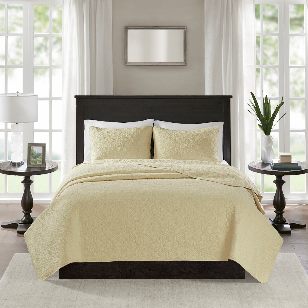 Madison Park Quebec Reversible Coverlet Set is the perfect coverlet to use as a layering piece or an alternative to your comforter for a new solid look. The classic stitch pattern pairs easily with your existing décor and will sure to add a new decorative element to your bedroom. The coverlet has 100% cotton fill and the face and the reverse of the coverlet are super soft brushed fabric.