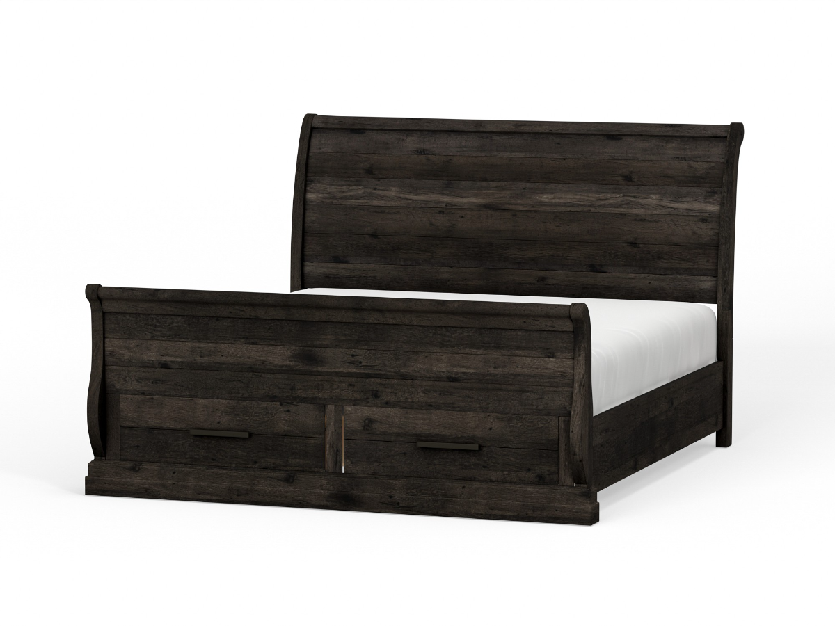 The Park Bed combines classic design with practical functionality for a stylish and efficient bedroom centerpiece. Available in both king and queen sizes, this bed is crafted from durable MDF and engineered wood in a rich dark gray wash that highlights its prominent wood grain. The elegant sleigh design adds a timeless touch, while black hardware complements the overall look with a sleek, modern contrast. Perfect for both traditional and contemporary spaces, the Park Bed offers a refined yet versatile style. Read More