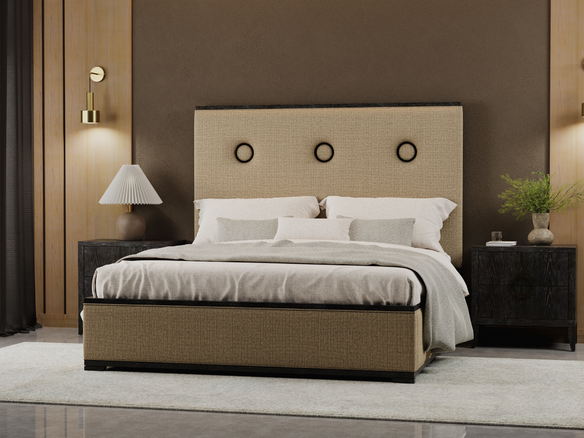 The Perkins Bedroom Set brings modern elegance, thoughtful functionality, and premium craftsmanship together for a complete bedroom upgrade. Available in king or queen sizes, this set includes the striking Perkins Bed, a spacious Dresser with Mirror, and the feature‑packed Perkins Nightstand. Each piece is crafted with embossed oak and birch veneers in a bold charred oak finish, creating a cohesive look with rich texture and contemporary style. The bed’s cream upholstered panels framed in dark wood with three embedded rings in the headboard add a unique design element that instantly draws the eye. Read More