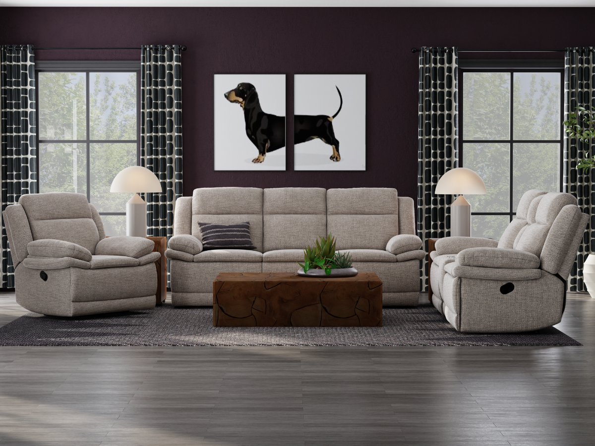 The Phantom Sofa, Loveseat, and Recliner Set delivers ultimate comfort, spacious seating, and cohesive style, making it a standout addition to any living room. Upholstered in soft light gray 100% polyester fabric, this three-piece set combines everyday durability with a clean, transitional look that blends effortlessly into a variety of décor styles. Read More