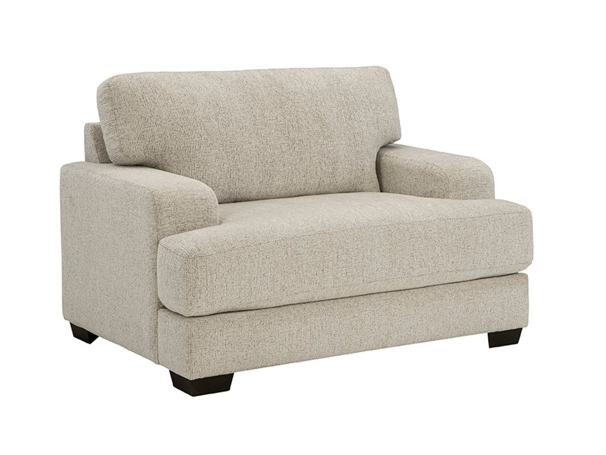 The Ronan Chair combines modern elegance with superior craftsmanship to elevate any living room. Upholstered in a soft cream-colored fabric, this stationary chair features a sleek, contemporary silhouette that complements a variety of décor styles. Built with mostly hardwoods, including oak, and reinforced with a double-reinforced seat spring rail, it offers exceptional durability and long-lasting support. Its sophisticated design and comfortable seating make it an ideal accent piece or a perfect match to the Ronan Sofa and Loveseat. Add the Ronan Chair to your home for a blend of style and quality that stands the test of time. Read More