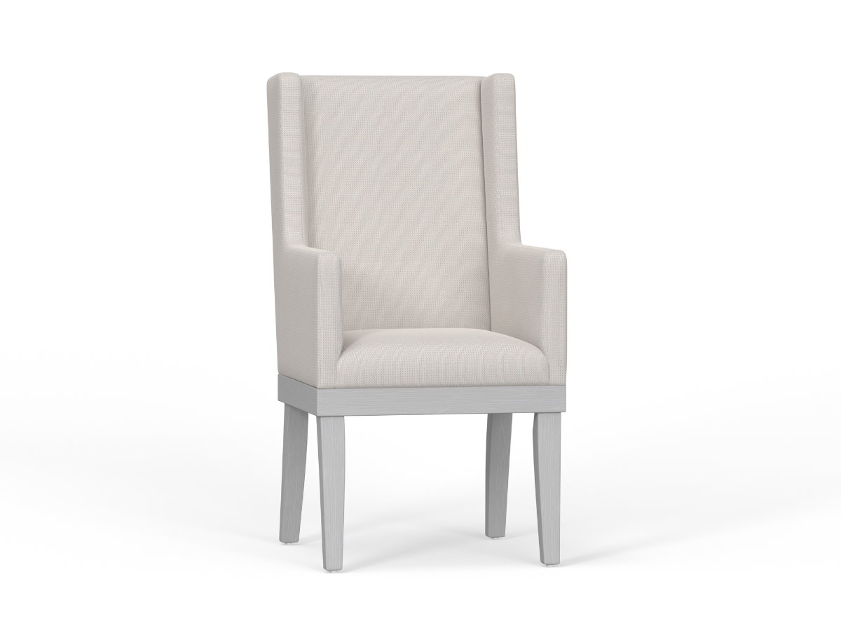 Its clean, classic silhouette and gently flared arms blend seamlessly into traditional and transitional spaces alike. Whether placed at the head of the table or used throughout your dining set, the Snowfall Arm Chair adds a touch of elegance and comfort to any mealtime setting.