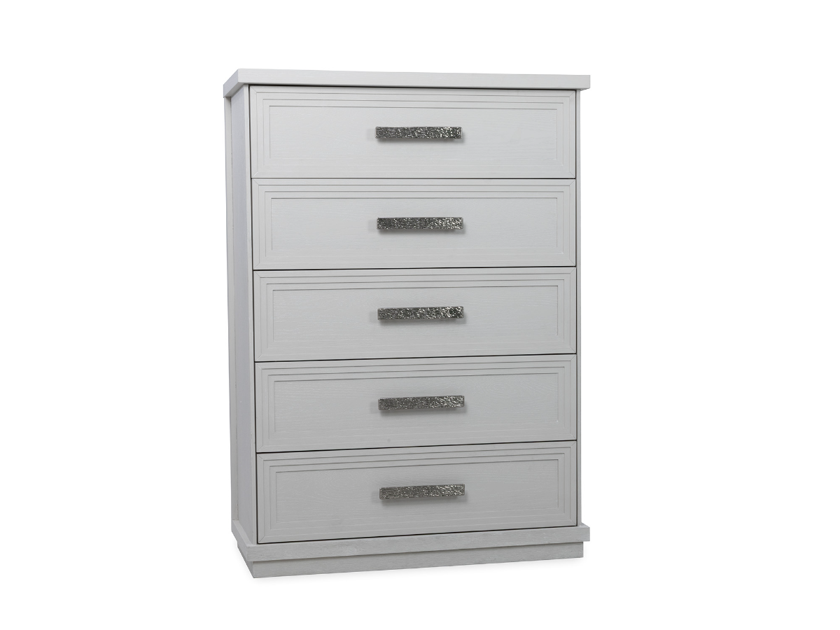 The Snowfall Chest offers both refined style and smart storage, wrapped in a soft antique white finish that brings a fresh, timeless feel to your bedroom. With five spacious drawers, this chest provides ample room for clothing and linens while enhancing your space with its classic design. Read More