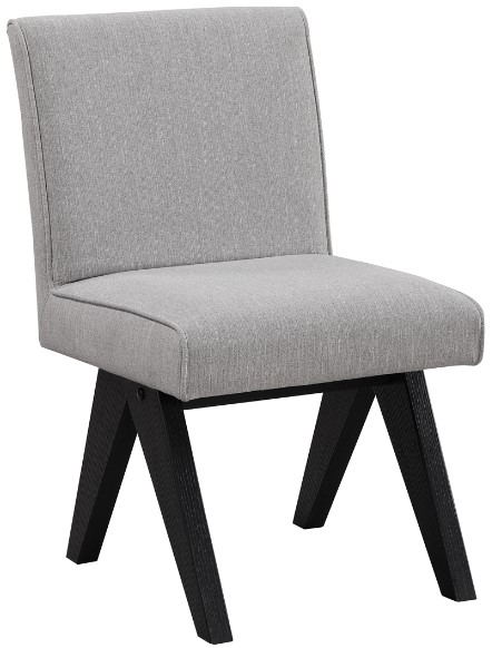 The Magnolia Side Chair offers modern styling in a comfortable, easy-care package. This smartly tailored upholstered chair features side welting and a line-look polyester cover for effortless cleaning.. Guests will appreciate the 4-inch cushioned seat as they dine, supported by the solid wood twin scissor leg base. Read More