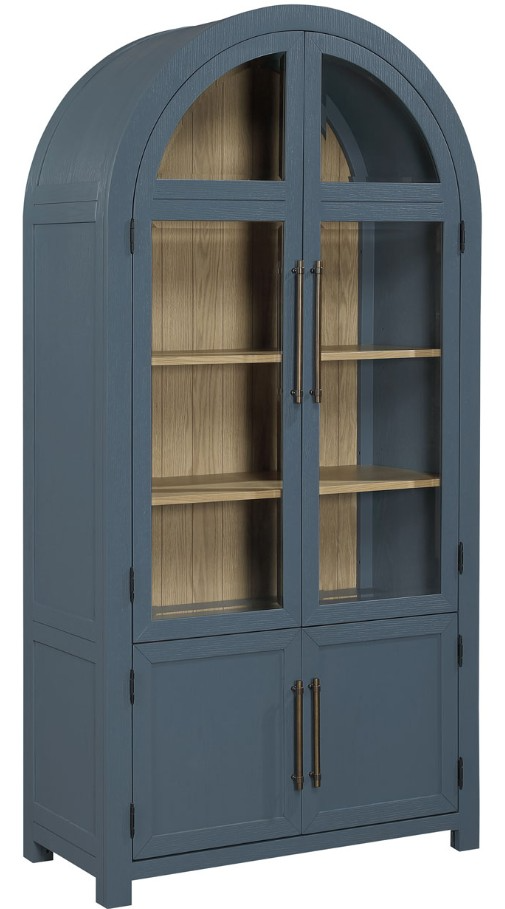The Magnolia curio, in bold dusty blue with a weathered sand interior, adds elegance to any room. Its domed top and upper dual glass doors create a stunning display for China, collectibles, or décor, while lower dual doors provide hidden storage. Read More