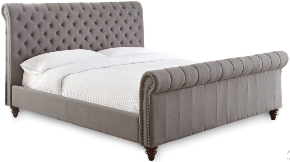 Relax in comfort with the Swanson Upholstered Bed from Steve Silver Company. A tufted headboard and nailhead trims are just some of the details built into this bed. The rolled headboard and footboard make the bed and stylish statement and the 39-piece rail system ensures a sturdy foundation for your good night’s sleep. Read More