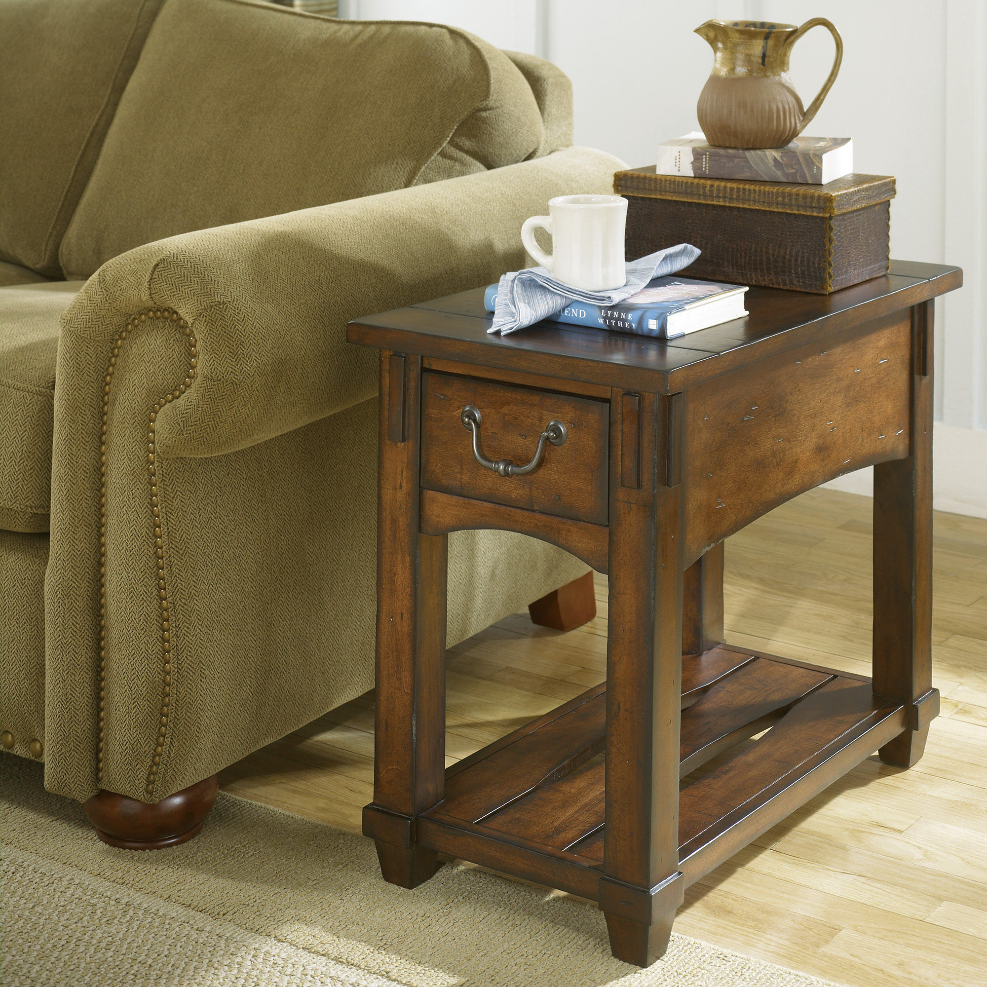 The Tacoma Brown Table collection offers a rustic and charming addition to your living space, with options for a cocktail, accent, or end table. Crafted from Poplar solids and veneers, these tables feature a rustic brown finish with burnished edges, creating a warm and inviting atmosphere. The V-grooved planked tops and distressing add to the collection's character.The cocktail table stands out with a lift-top mechanism, providing storage capability inside, and a lower open shelf at the bottom for added functionality. The end table and accent table each come with one drawer, with the accent table having a slimmer profile for versatility in placement. Elevate your space with the Tacoma Brown Table collection, where rustic charm meets practical design for a welcoming living area. Read More