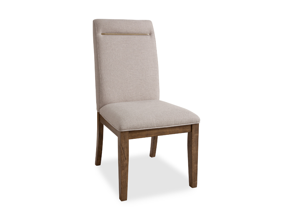 The Toffee Side Chair brings a touch of elegance and sophistication to your dining room. It features a tightly tailored canvas cover in a creamy hue, ensuring a clean and inviting look. The back of the chair is adorned with a striking brass horizontal accent, adding a sophisticated detail that catches the eye. The toffee-colored wood legs provide a warm, natural contrast, contributing to the chair's overall aesthetic appeal. Designed with both style and comfort in mind, this chair seamlessly blends classic and contemporary elements, making it a versatile addition to any dining space. The sturdy construction and refined design make the Toffee Side Chair an excellent choice for enhancing the ambiance of your dining area.