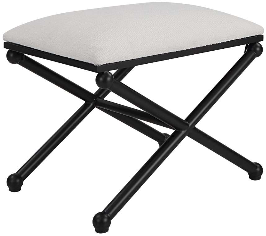 With classic simplicity, this small bench features a smooth iron base finished in satin black and upholstered in crisp textured white polyester. Make a bold statement by incorporating this stunning furniture into your home. Read More