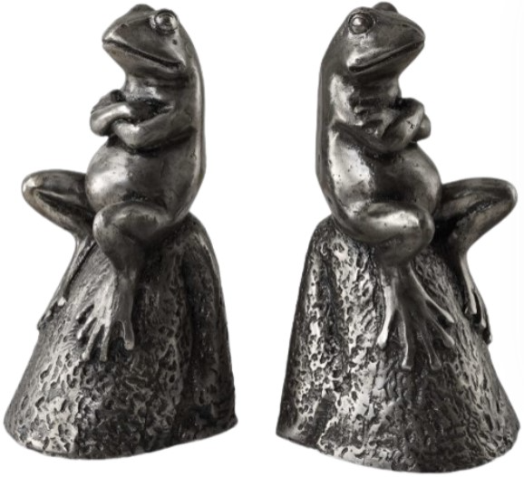 Add a touch of whimsy and elegance to your bookshelf with our Daydreaming Frog Bookends. Crafted with intricate detail, these charming frogs are perched on rocks, finished in a lightly antiqued silver for a timeless appeal. Perfect for adding character to any space while keeping your books organized in style. Read More