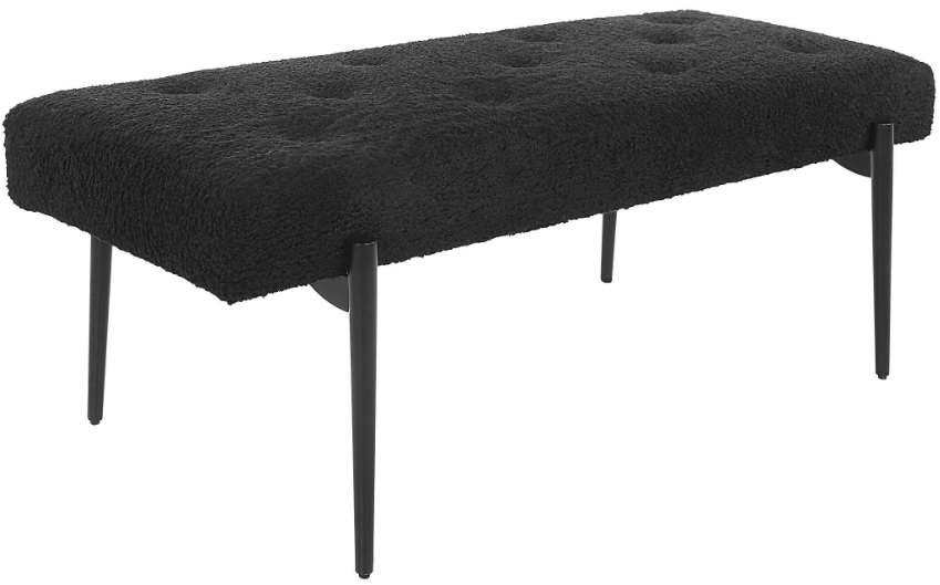 Expertly tailored in black faux shearling, this modern accent bench features a plush button tufted seat, atop four tapered stainless steel legs finished in satin black. Make a bold statement by incorporating this stunning furniture into your home. Read More