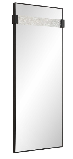 The Stratton Mirror is constructed in a linear satin black iron frame, featuring a suspended acrylic slab, adorned with heavy texture for an extra touch of sophistication and style. May be hung horizontal or vertical. Read More
