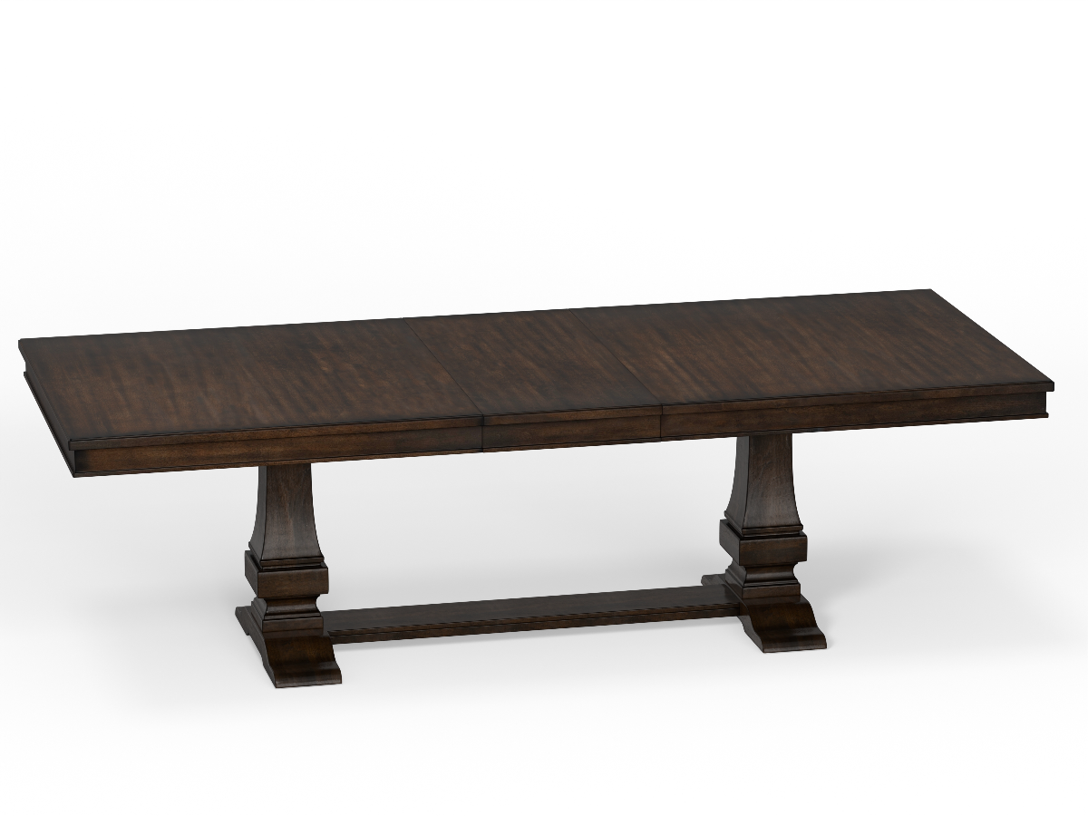 The Winston Dining Table combines timeless elegance with modern functionality. Crafted from birch veneers in a rich brown cherry finish, this table features a sturdy double pedestal base that enhances its classic design. Its cable-driven system makes extending the table effortless, while the 18-inch removable self-storing leaf allows you to adjust the size to accommodate any gathering. Perfect for family meals or formal dinners, the Winston Dining Table is a versatile centerpiece for your dining room.