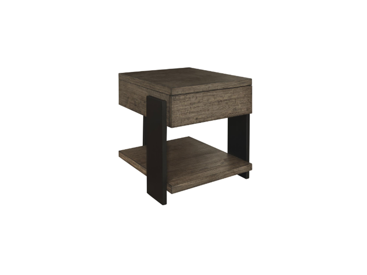 Introducing the Winter Table Collection, a fusion of innovative design and practical functionality that adds a touch of modern elegance to your living space. Available in both the cocktail and end table options, this collection caters to your needs for both style and convenience. The Winter Cocktail Table is a captivating centerpiece that elevates your living room decor. With a unique design, this table opens up to reveal a hidden table that lifts out on hinges, offering additional surface space for your convenience. Crafted from brown wood, the table boasts thick black bands for legs that extend up the sides, creating a striking contrast and adding an element of visual interest. The Winter End Table complements the collection with an open shelf underneath, providing storage options and displaying decorative items. The cohesive design elements between the two tables create a sense of unity in your living area. Experience the perfect blend of aesthetics and utility with the Winter Table Collection – a testament to quality craftsmanship and tasteful design that transforms your living space into a haven of beauty and practicality.